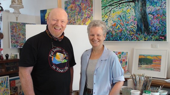 Each painting begins with either an itch to catch with paint something I’ve found arresting, or the hunger to play colours with and against each other. There is no final image in mind but the work evolves and changes, often drastically, as I go along. Acrylics are perfect for the way I work, and the brushes get smaller as the end gets nearer!